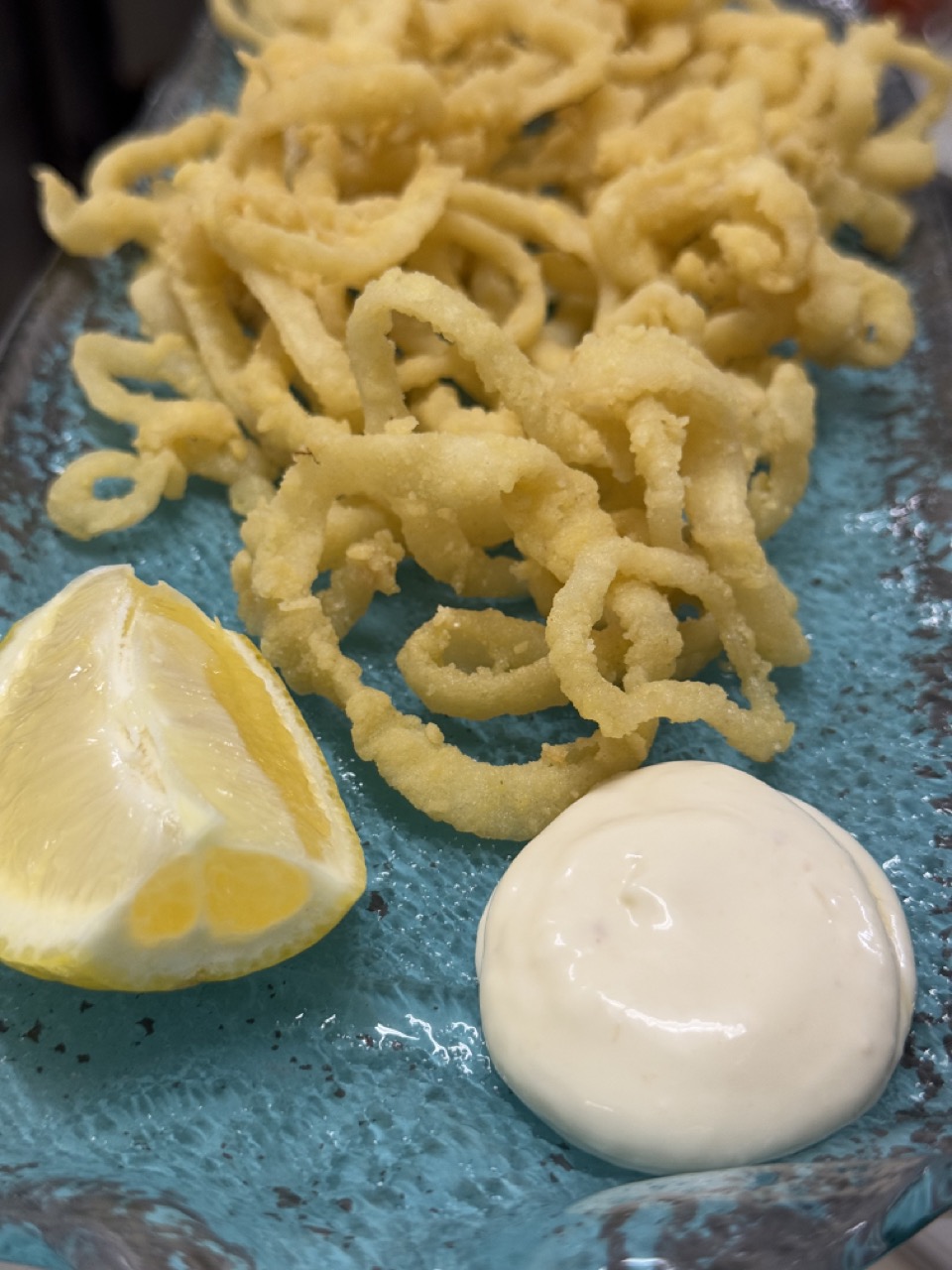 - Nuestros hilos de calamar a la andaluza. Sí, calamares a la andaluza hay en muchos sitios… ¡Pero así de finitos y ricos no en tantos! Además podrás maridarlos con la salsa con la que los servimos, ¡La tinta del calamar!